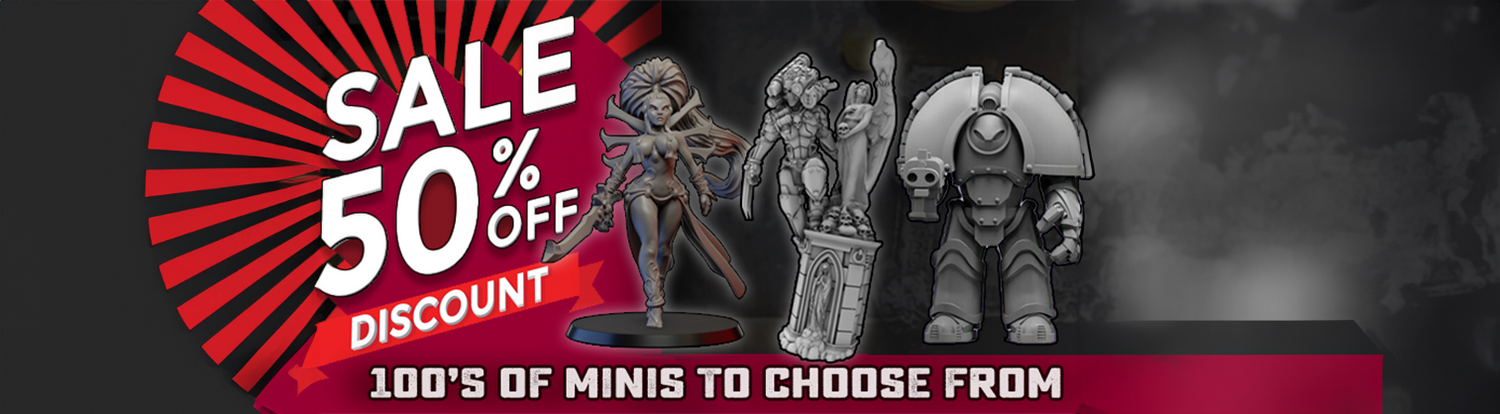 Explore our curated selection of top designers and 3D-printed miniatures at 50% off. Forget BOGO—buy exactly what you want! Act fast, as we update this sale category with new miniatures every month. Discounts are automatically applied at checkout; no coupon code needed.
