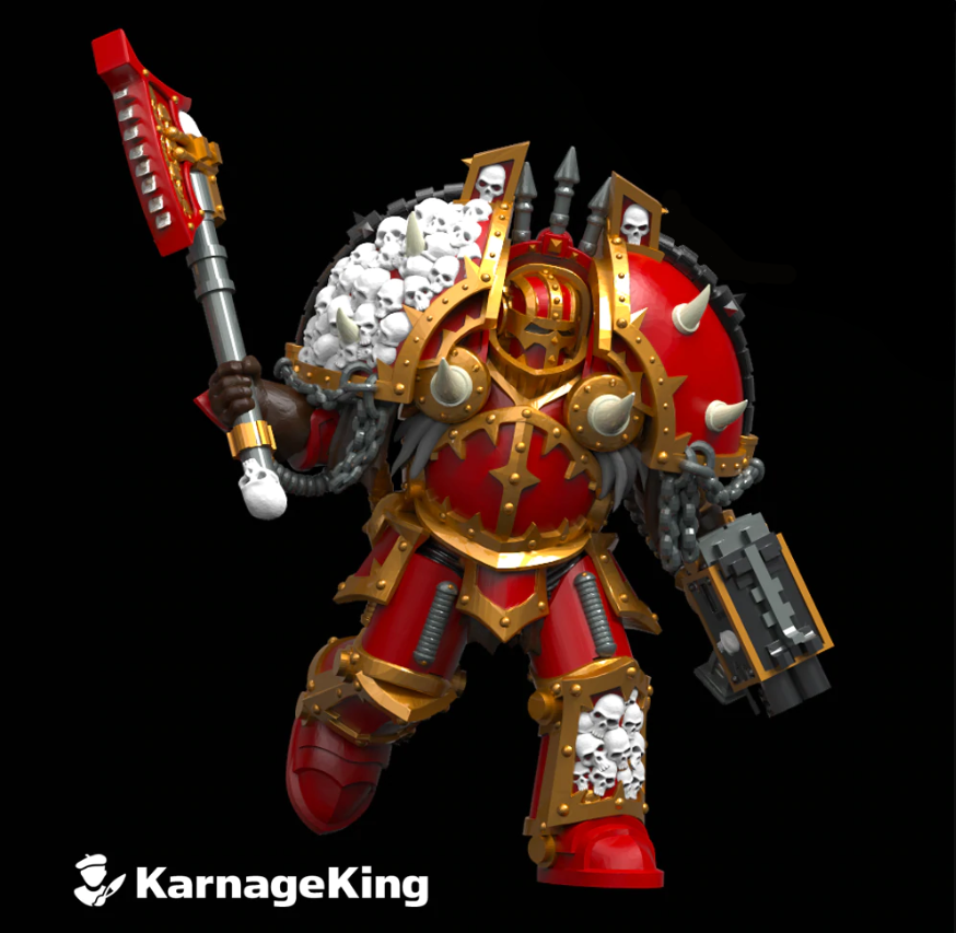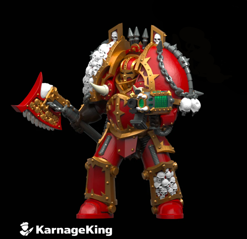 The Blood Butcher Terminators are Warhammer 40k compatible as alternative 3D printed Chaos Terminators, World Eaters Slaughterbound, or Exalted Eightbound, designed and sculpted by the free-blade artist, KarnageKing.