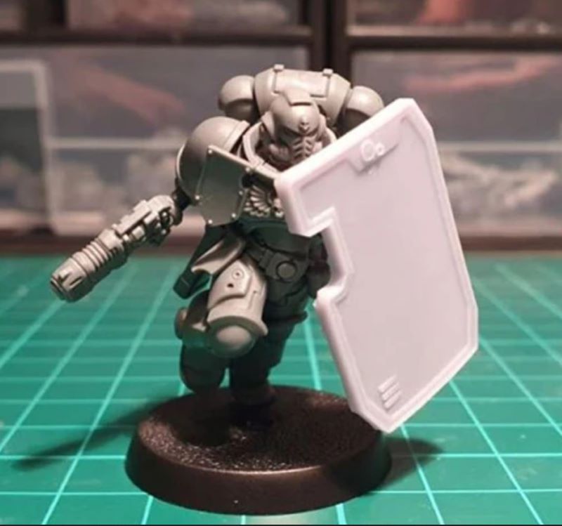 These V1 Breachers Boarding Shield Conversion Bits are Warhammer 40k compatible for use as an alternative 3d printed Primaris Space Marines miniature, STL designed by Tight Bore Designs.