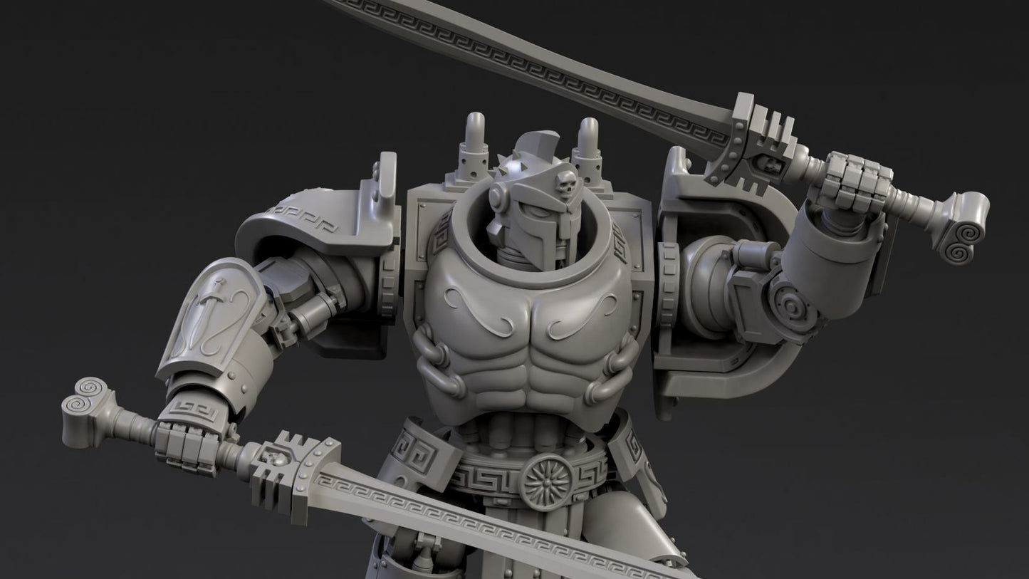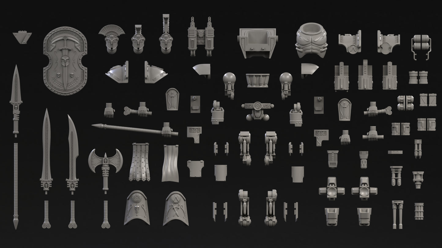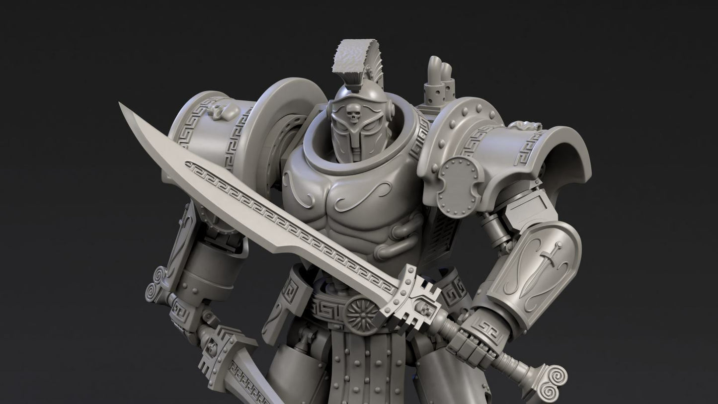 The multipart DeamonSlayer-Spartan is made to a 25-micron standard on a high-quality resin printer. Fully assembled it stands 11cm tall. It can be assembled in a wide range of poses with weapon and customization options.