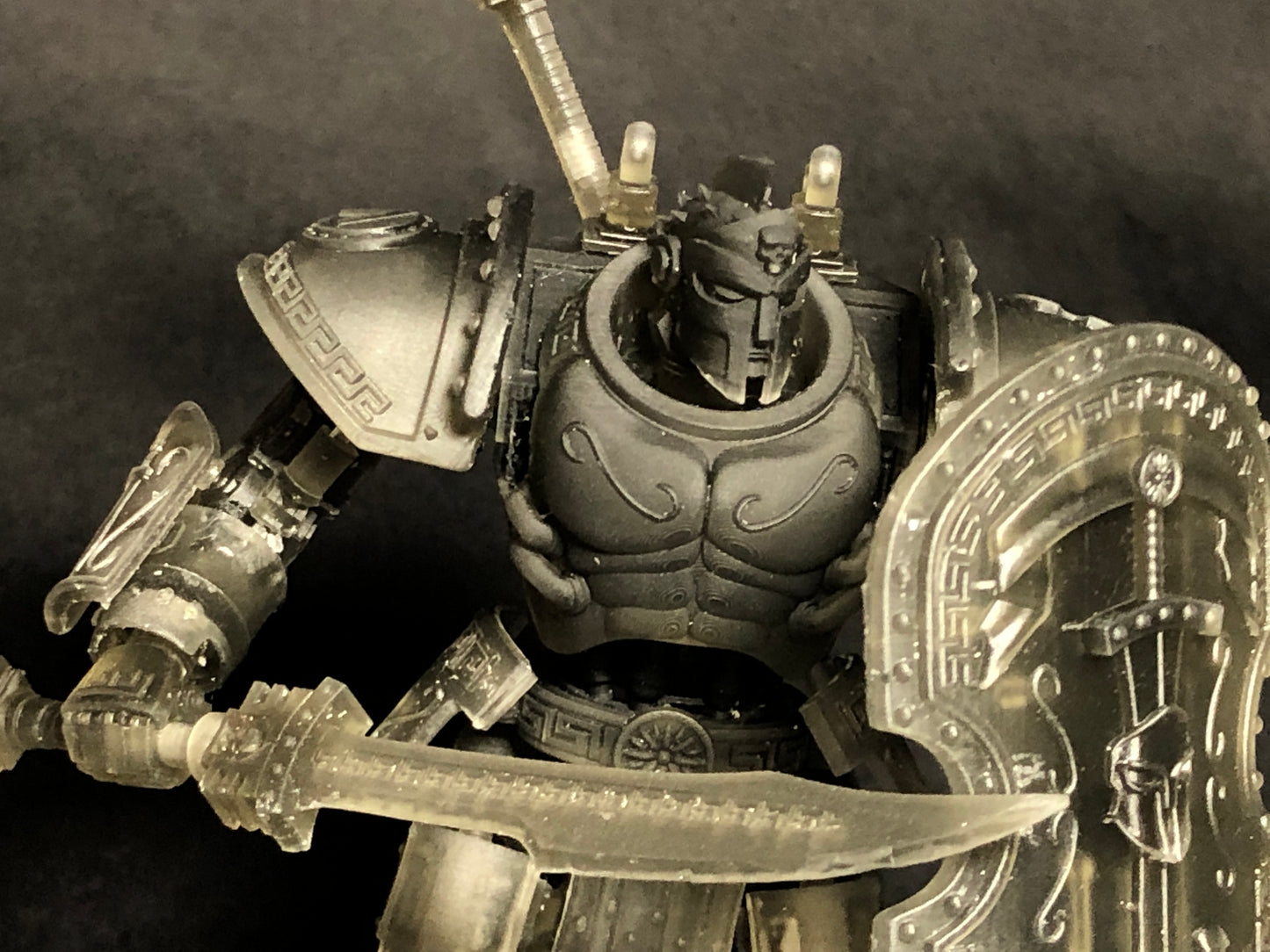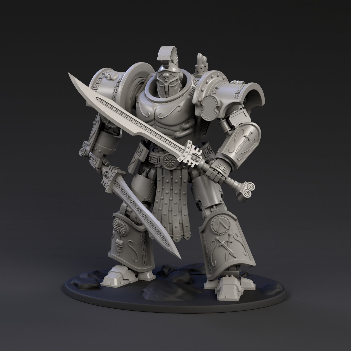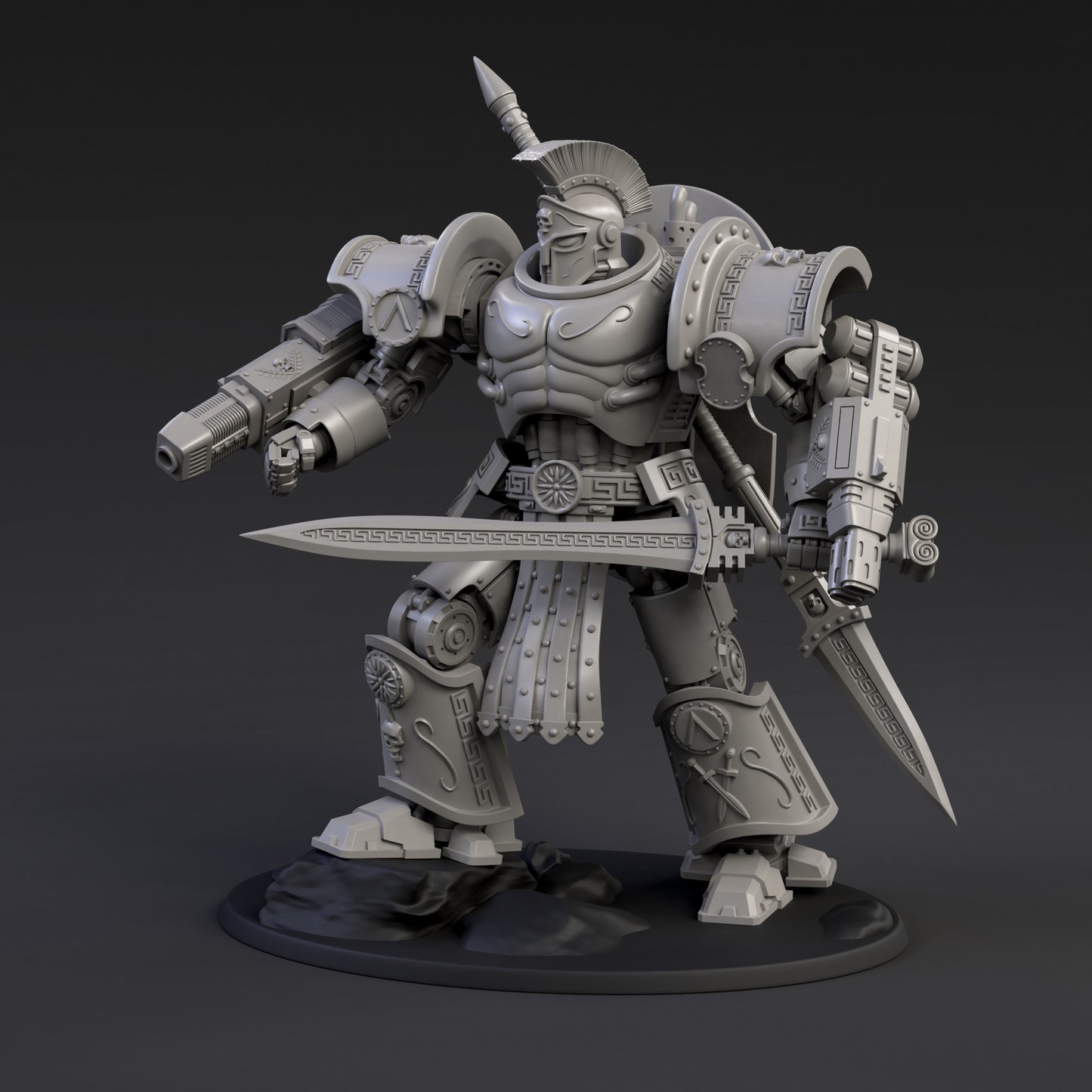 The multipart DeamonSlayer-Spartan is made to a 25-micron standard on a high-quality resin printer. Fully assembled it stands 11cm tall. It can be assembled in a wide range of poses with weapon and customization options.