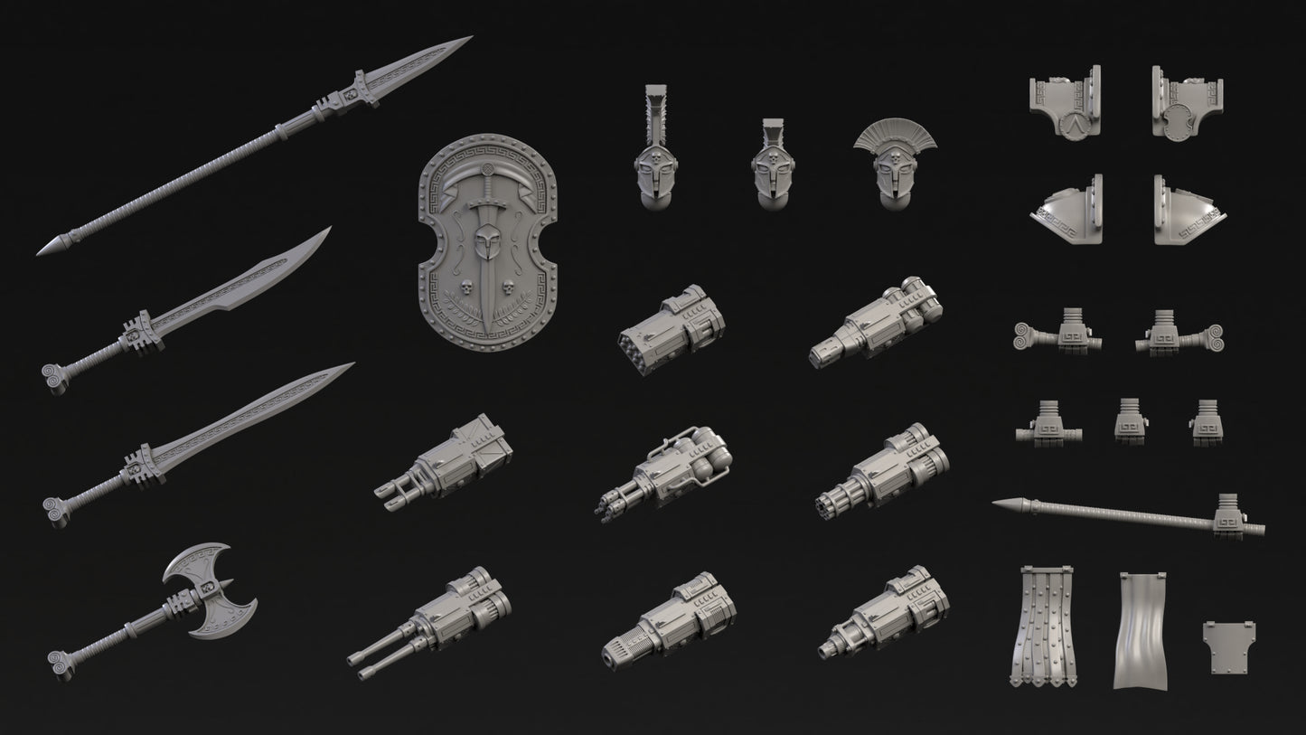 The Spartan Kit comes with the following, including a newly redesigned chest, bracers, and two head bits!
