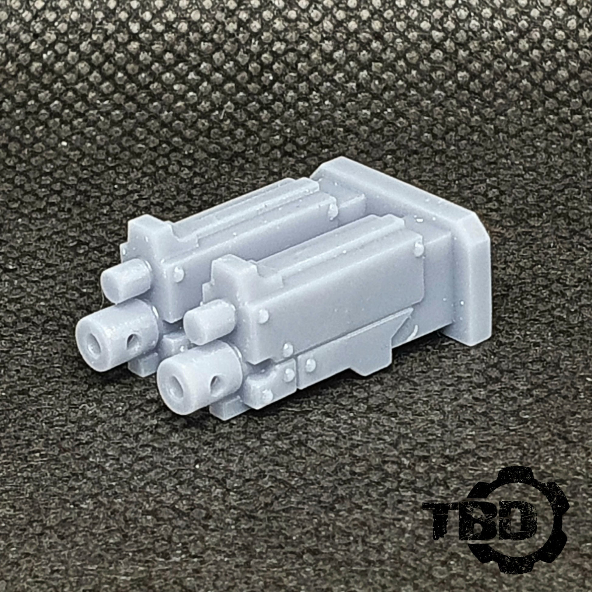 The back mount to attach the turret to an Impulsor chassis is also included in the sets pictured. Each weapon and turret has pre-cut holes for magnets so you can swap out the barrels.