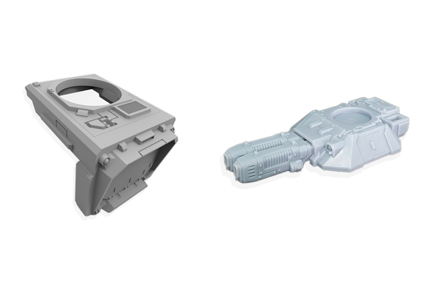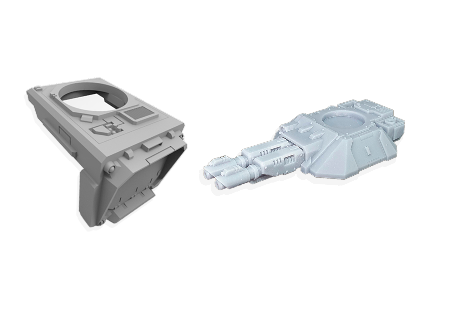 The TBD Double Turret V2 Conversion Bits are Warhammer 40k compatible for use as an alternative 3d printed Gladiator Tank miniature solution, STL designed by Tight Bore Designs.