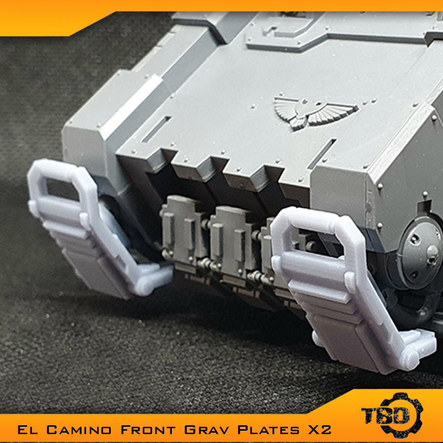 The TBD El Camino Grav Plates are Warhammer 40k compatible for use as an alternative 3d printed Impulsor miniature solution, STL designed by Tight Bore Designs.