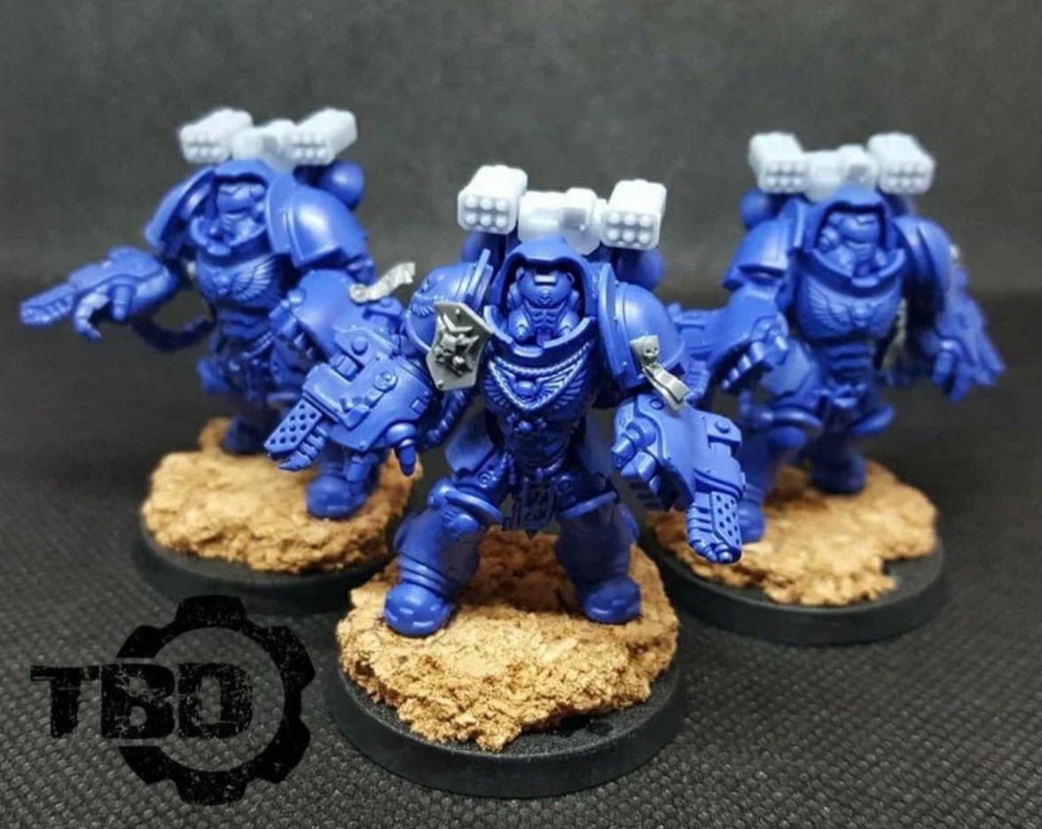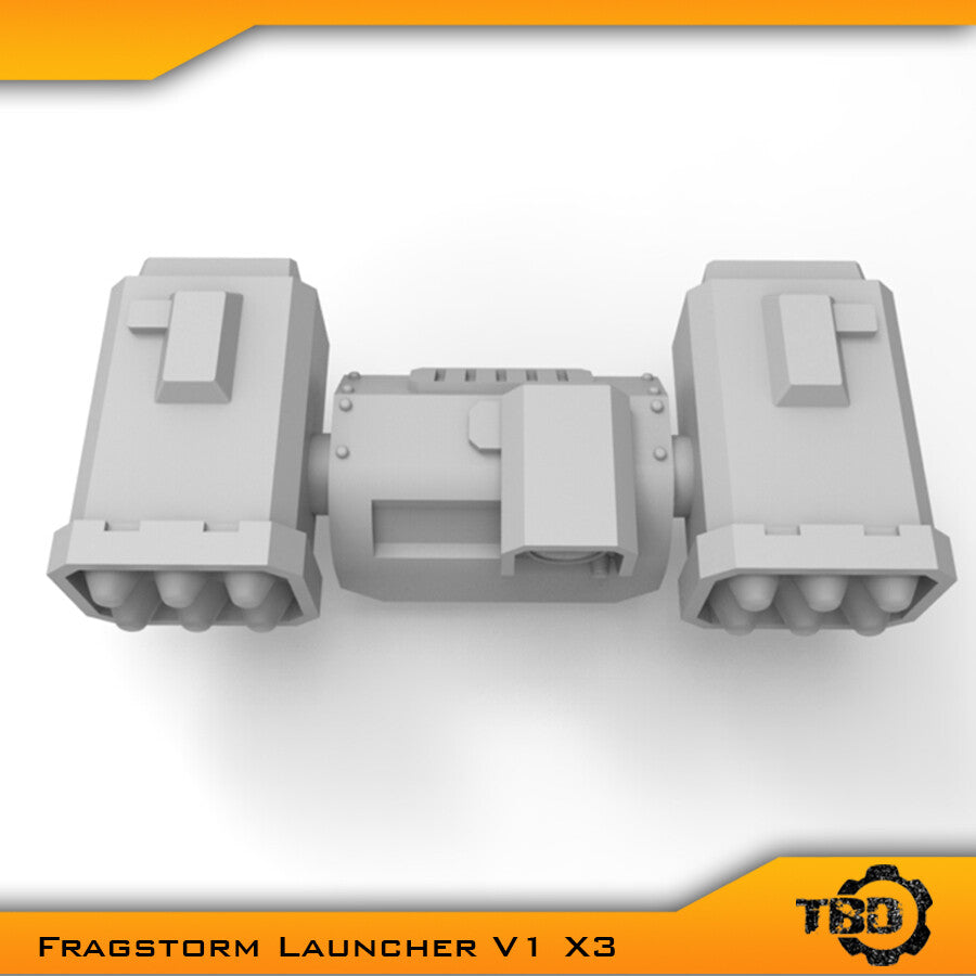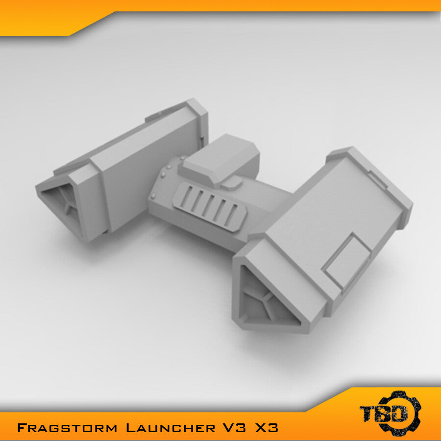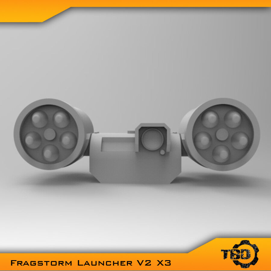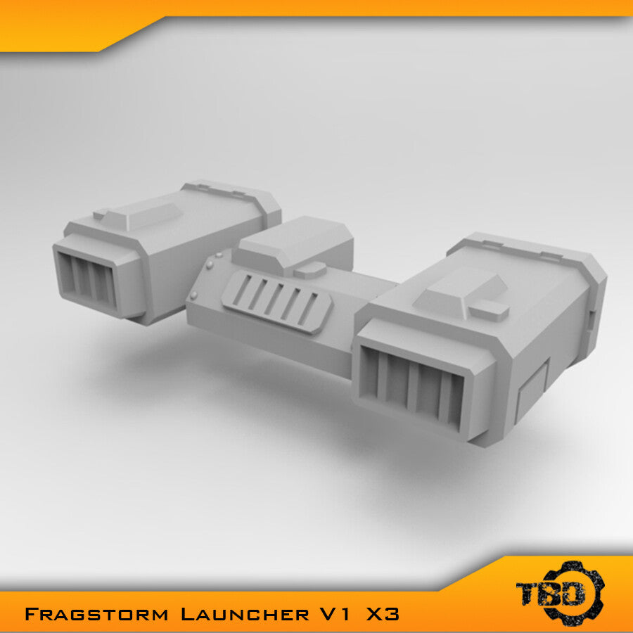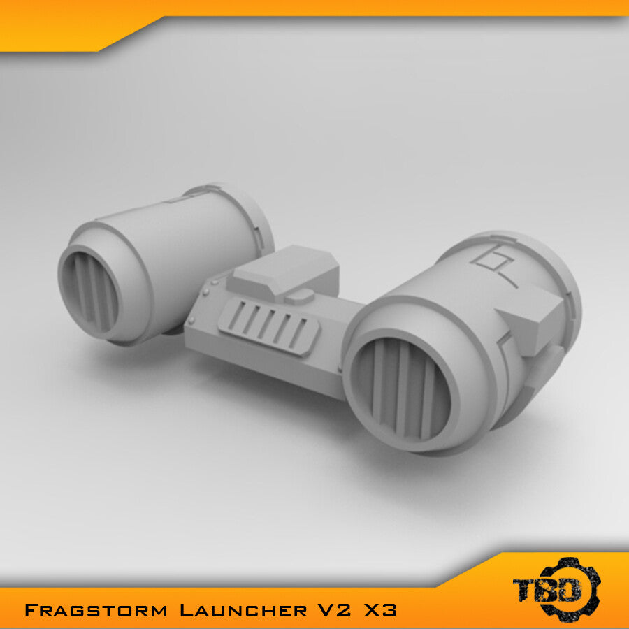 The TBD Fragstorm Launcher Conversion Bits are Warhammer 40k compatible for use as an alternative 3d printed Aggressor miniature solution, STL designed by Tight Bore Designs.