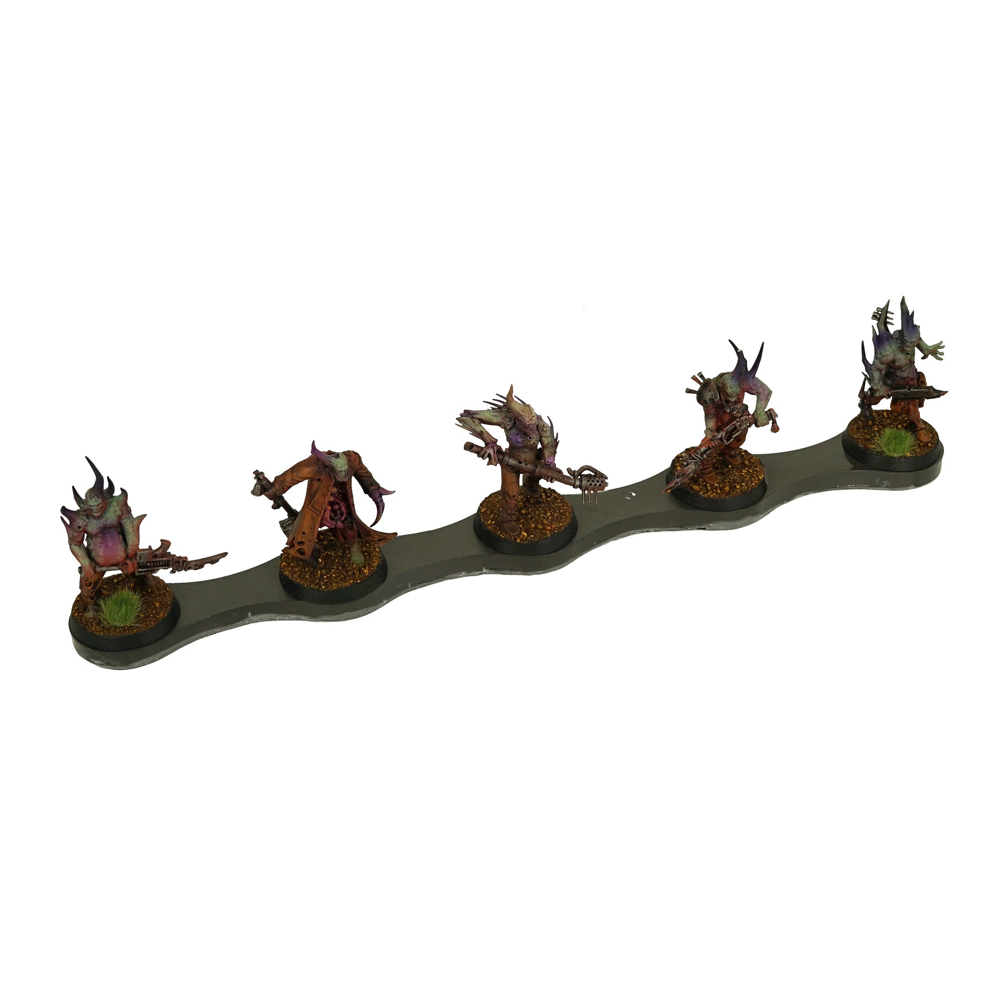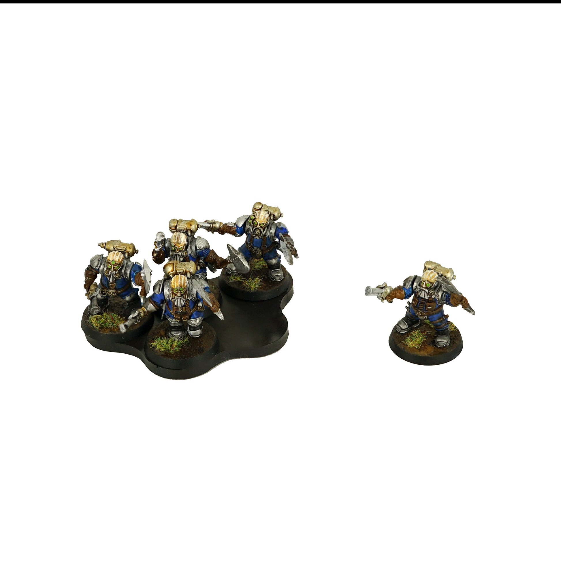 For models that aren't standing nicely in their bases, like Guardians, Tactical Marines, or Guardsman, get one size up so they have space for all their arms.