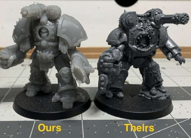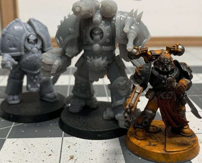 The torsos are one-piece, with 2 pins to attach each arm at the shoulder. The last images after the size comparison show a random Obliteration Hulk printed in resin and primed grey to show detail!